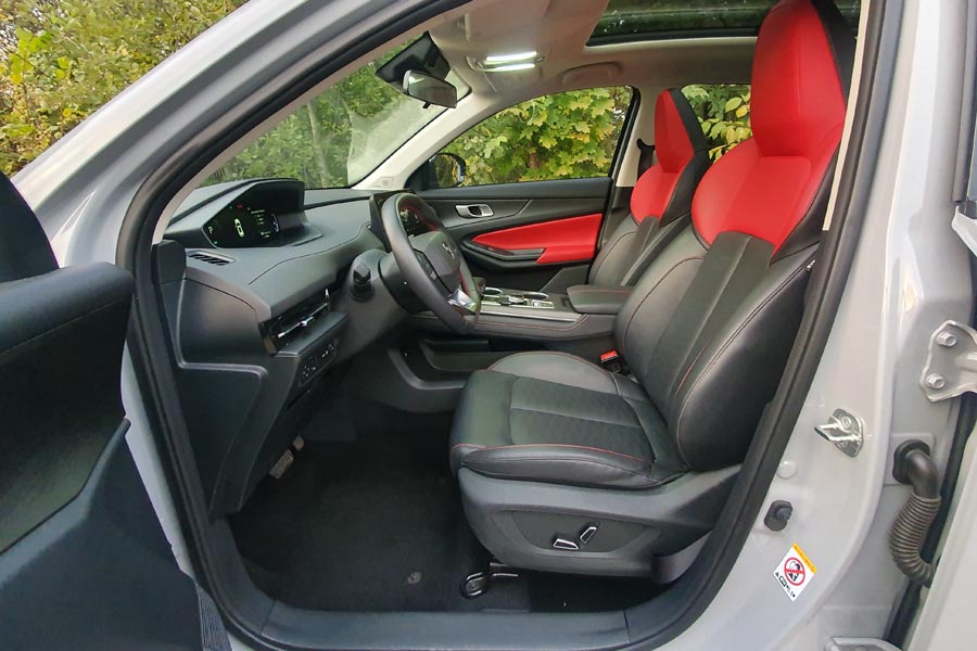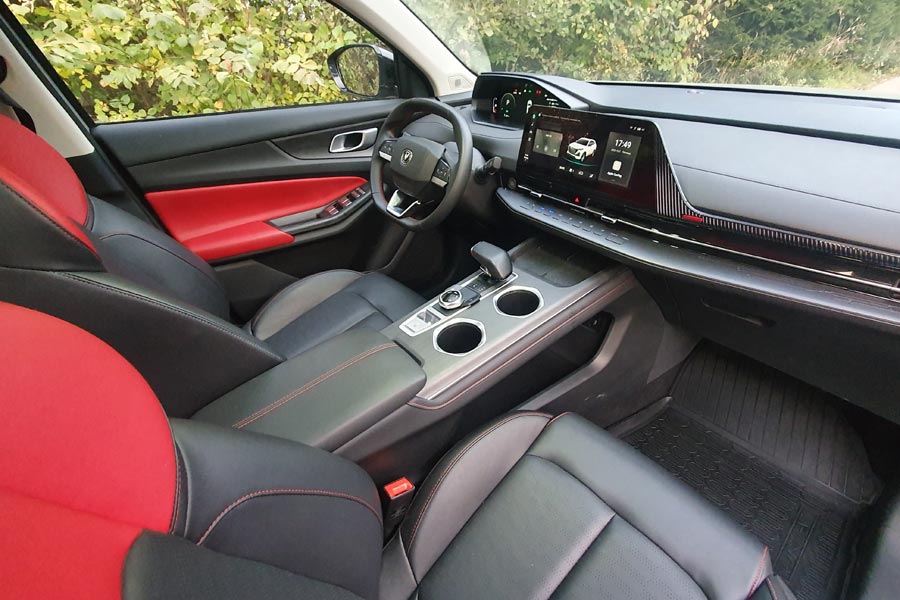 Тестовый автомобиль в средней комплектации Tech. Он неплохо упакован опциями: есть система камер кругового обзора со встроенным видеорегистратором, интеллектуальный круиз-контроль, фоновая подсветка салона, подогрев всех сидений. Правда, греются только подушки кресел, а аналогичные модели других китайских брендов часто имеют спереди и подогрев, и вентиляцию. Огромная панорамная крыша с люком визуально расширяет пространство салона. Климат-контроль только однозонный, но управляется он при помощи физических клавиш, поэтому регулировать настройки удобно даже во время движения.
