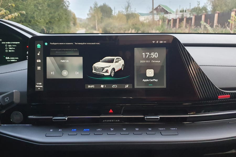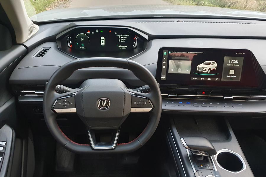Центральное место на передней панели занимает 12,3-дюймовый дисплей мультимедиа. Система работает без задержек, поддерживает прокол Apple CarPlay. Еще пару лет назад автомобили Changan были аутсайдерами в плане русификации бортовых систем. Приятно осознавать, что ситуация изменилась, тестовый Uni-S готов общаться с россиянами на родном для нас языке.