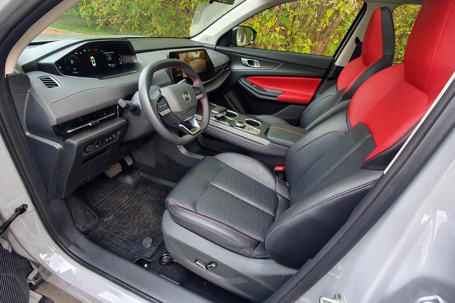 Красные вставки на спинках сидений и дверных картах оживляют черный салон, но кому-то могут показаться аляповатыми. Передние сидения с интегрированными подголовниками и развитой боковой поддержкой. Подобрать удобную посадку легко, водительское кресло регулируется электроприводами в 6 направлениях, а сидение переднего пассажира в четырех. Рулевая колонка настраивается по вылету и по углу наклона.