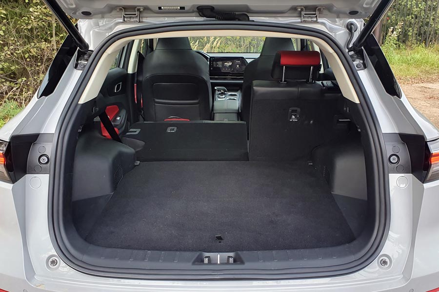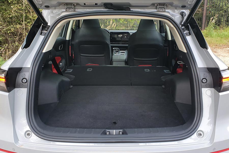 Багажник объемом 475 л имеет правильную форму, при складывании спинок задних сидений образуется абсолютно ровная площадка для груза. Колесные арки закрыты накладками из жесткого пластика, который легко царапается. Под полом багажника удобный органайзер для инструмента, на нижнем уровне запасное колесо – «докатка». Если убрать органайзер, здесь хватит места и для полноразмерной запаски. Крышка багажного отсека оснащена электроприводом, который можно активировать как снаружи, так и клавишей слева от рулевой колонки. Странно, что даже в средней комплектации отсутствует такая копеечная мелочь, как шторка багажника.