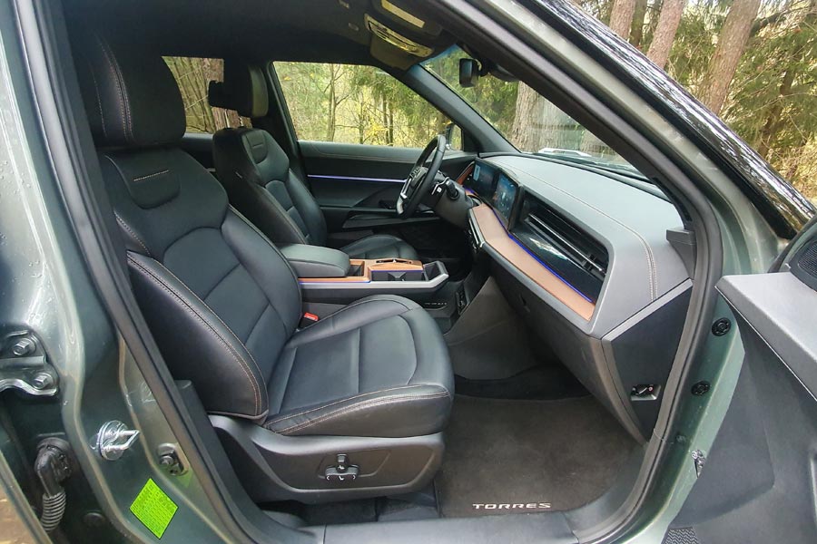 По габаритам Torres вписывается в нишу среднеразмерных SUV. Здесь 4,7 метра от носа до хвоста. В салоне только два ряда кресел, так что места хватает везде. Среди удобств для задних седоков - двухступенчатый подогрев, пара зарядных слотов Type-C и дефлекторы обдува, хотя и без отдельной зоны климата.