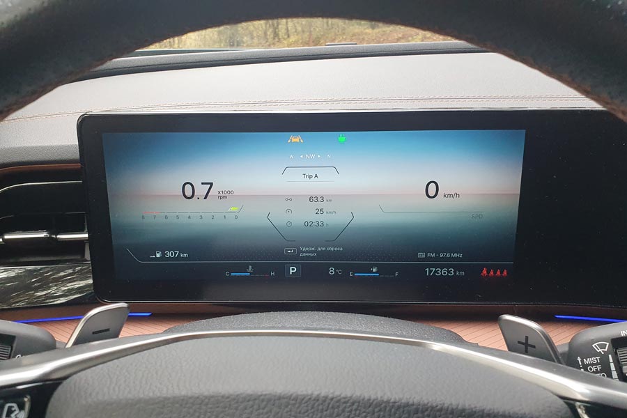 Мультимедиа хорошо русифицирована. Экран охотно отзывается на касания, хотя по качеству картинки уступает многим китайцам. Пользоваться перегруженным меню на ходу неудобно. Здесь и настройки климата, и подогрева кресел, и много чего еще. Доходит до странного. Режимы езды вы "щелкаете" в мультимедиа, а значок о выбранном варианте выводится на соседнем экране-приборке. Зачем?