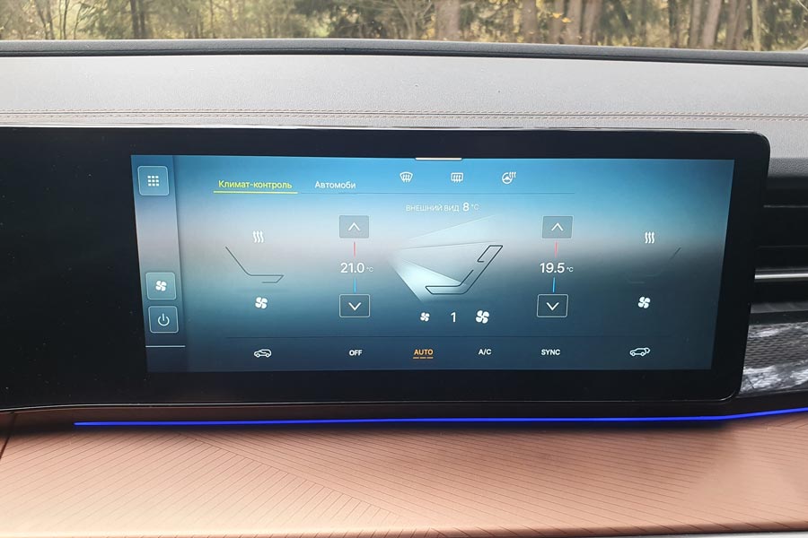 Четырехспицевый руль с усеченным ободом на удивление велик, зато не перекрывает показания приборов. Сюда сосланы почти все выжившие физические переключатели - и это явный перегруз. В остальном руль удобный. Есть подогрев, а диапазона настроек хватает и по вылету, и по наклону.
