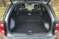 Багажная дверь выглядит как распашная. А все из-за накладки, имитирующей кофр для запасного колеса и сдвинутой в сторону ручки. Хватаешься за нее и... дверь едет не в сторону, а вверх, как у большинства кроссоверов. За ней просторный отсек, где обещано аж 703 литра объема. Под полом лежит запаска-докатка и органайзер для инструментов. По бокам - голый и твердый пластик, закрывающий колесные арки.